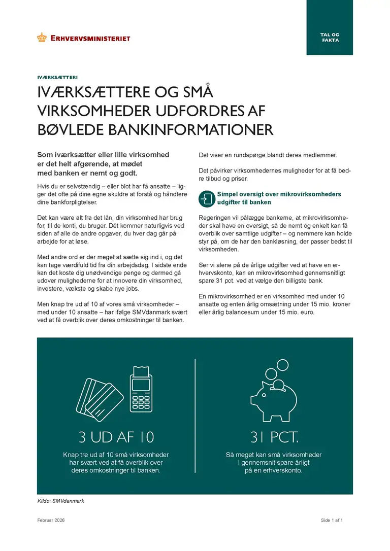 Indførelse af simpel og synlig oversigt i fx netbanken over mikrovirksomheders udgifter til bankerne.